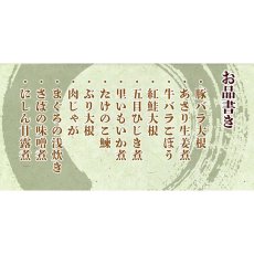 肉じゃが、ひじき煮、豚バラ大根、あさり生姜煮など、
