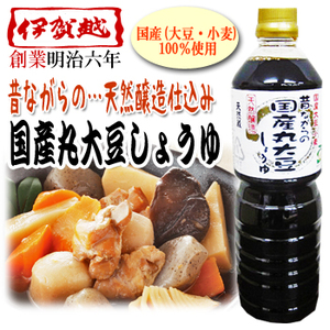 伊賀越 昔ながらの 国産 丸大豆しょうゆ 1リットル 国産 大豆 小麦 100%使用 醤油 調味料