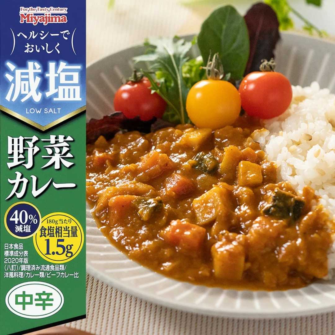 【海外発送可】減塩 野菜 カレー 180g 中辛 宮島醤油 かるしお レトルト 常温保存 インスタント 減塩料理 塩分カット