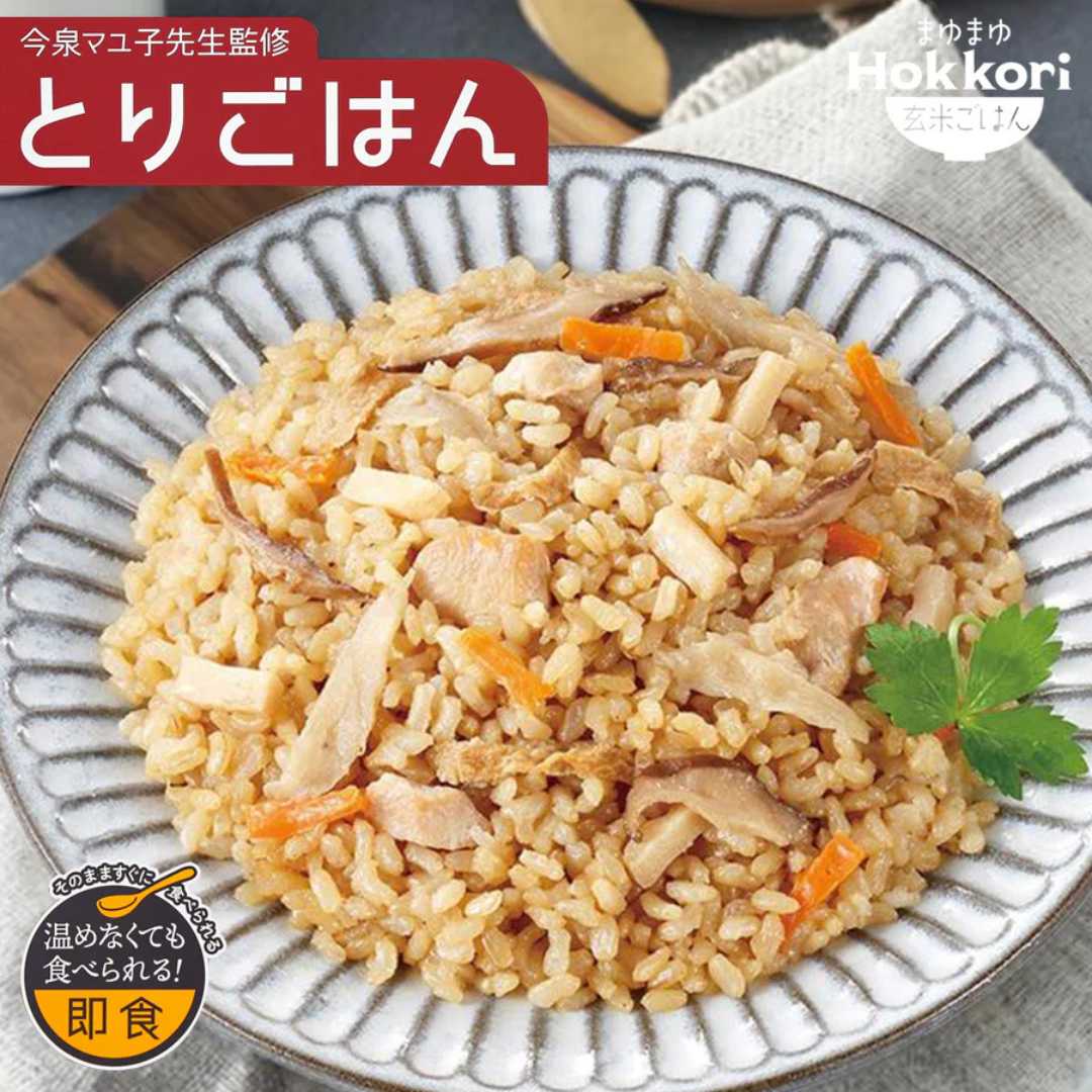 【海外発送可】まゆまゆ Hokkori 玄米ご飯 とりごはん 180g フェーズフリー認定 常温保存 そのまま食べられる 電子レンジ レンチン 防災
