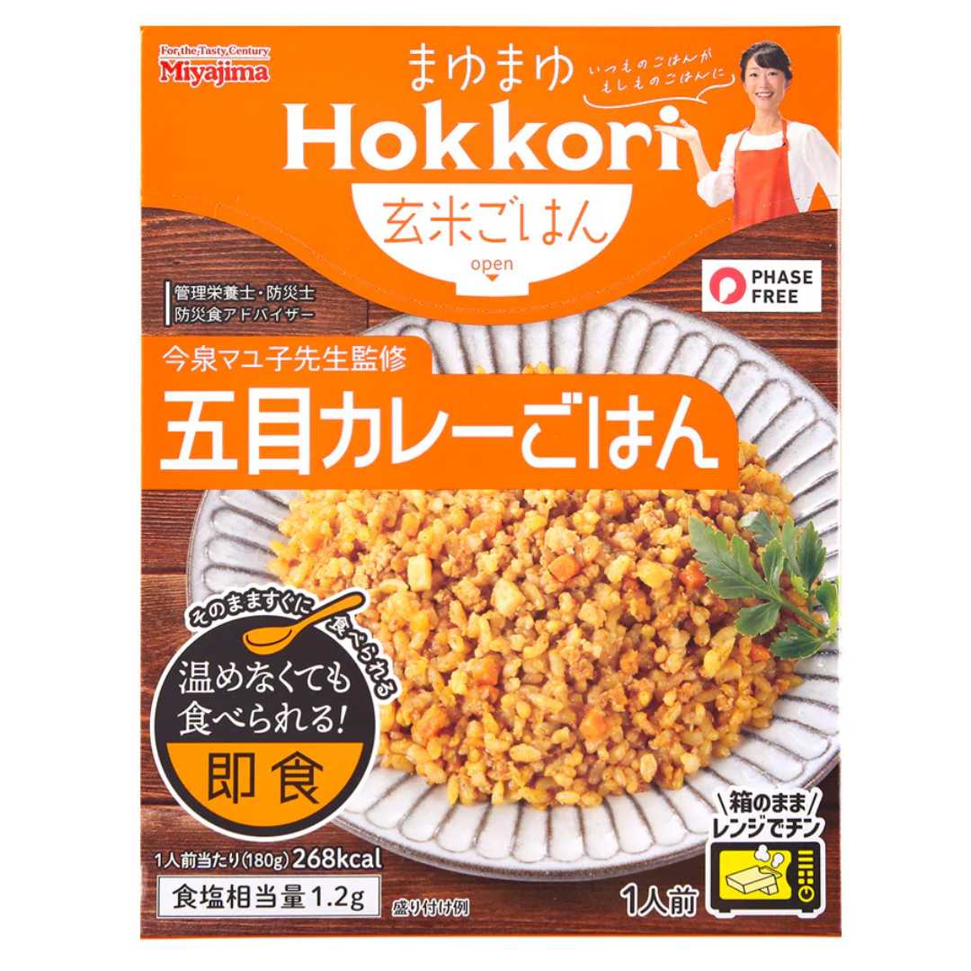 【海外発送可】まゆまゆ Hokkori 玄米ご飯 五目カレーごはん 180g フェーズフリー認定 常温保存 そのまま食べられる 電子レンジ レンチン 防災