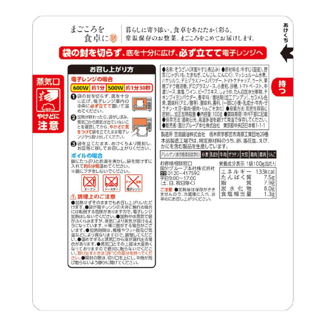 【海外発送可】洋風牛すじ煮込み 100g(電子レンジ対応パック)レトルト おかず 和食 惣菜 まごころを食卓に 膳 tabete おかず 常温保存 [T81F2715]
