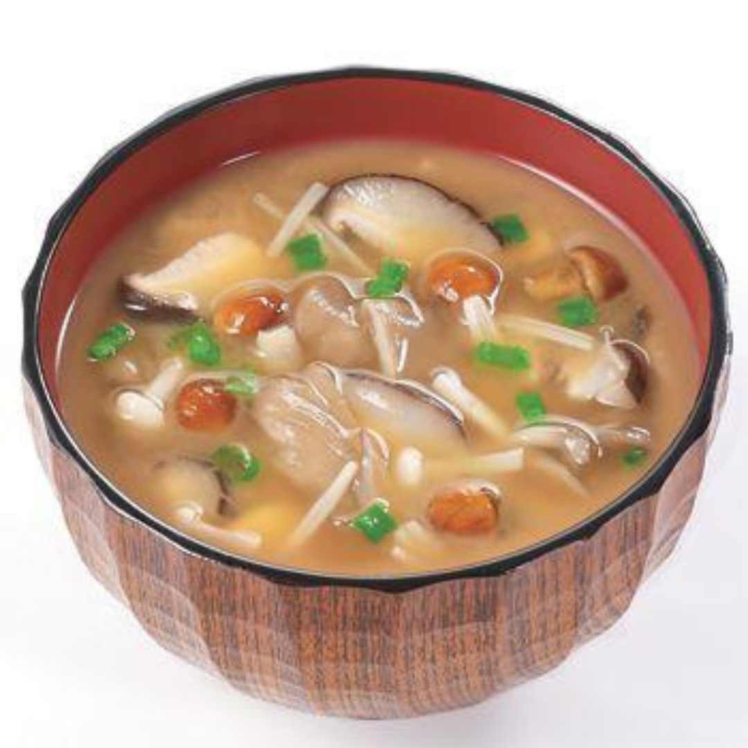 | 米みそ(大豆を含む、国内製造)、まいたけ、しいたけ、なめこ、えのき、ねぎ、豆みそ、でん粉分解物、かつお昆布だし、でん粉、野菜エキスパウダー、オニオンエキス、かつお節粉末、酵母エキス/増粘多糖類、酸化防止剤(V.E)(原材料の一部に大豆を含む) | |