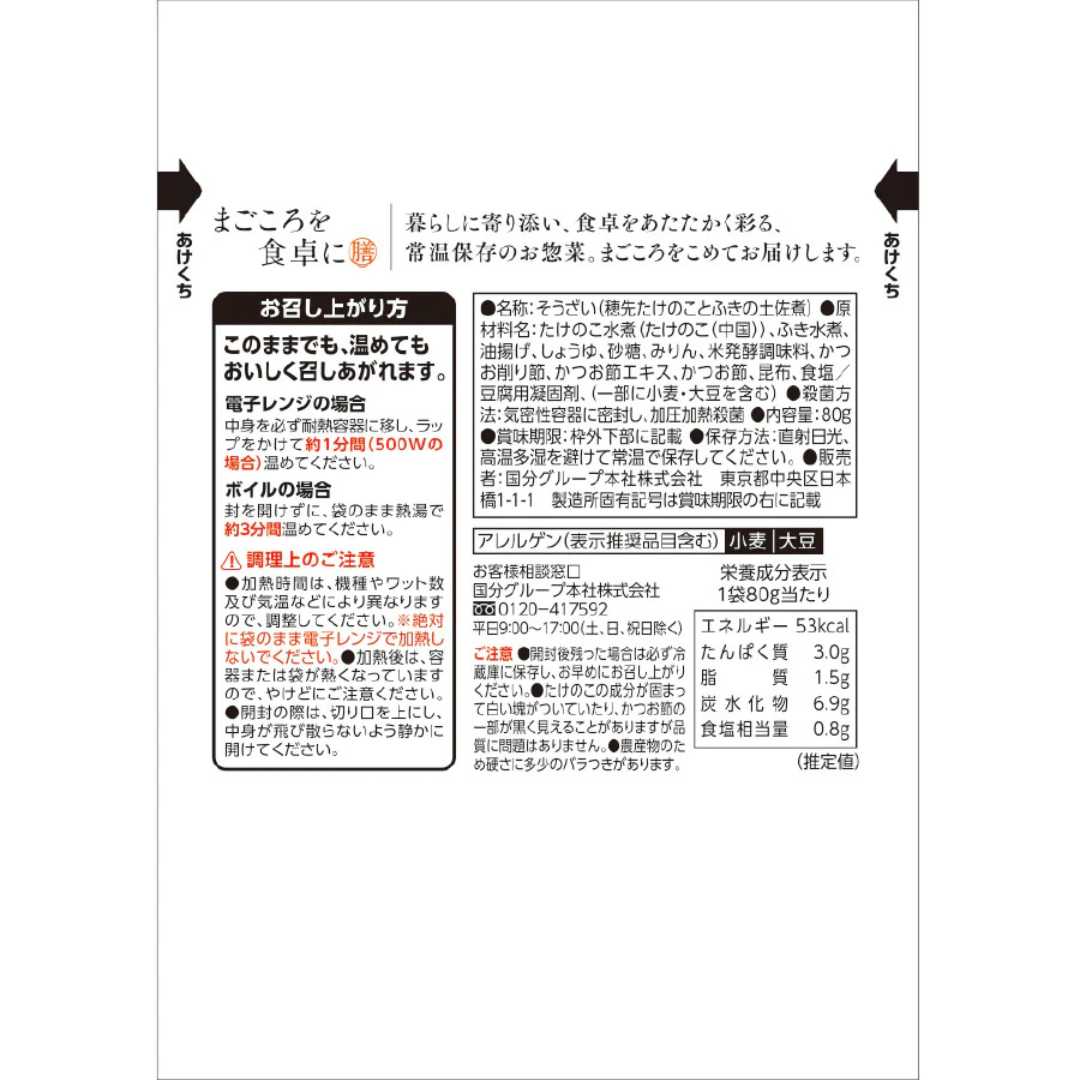 【海外発送可】穂先たけのことふきの土佐煮 80g レトルト おかず 和食 惣菜 常温保存 まごころを食卓に 膳 tabete