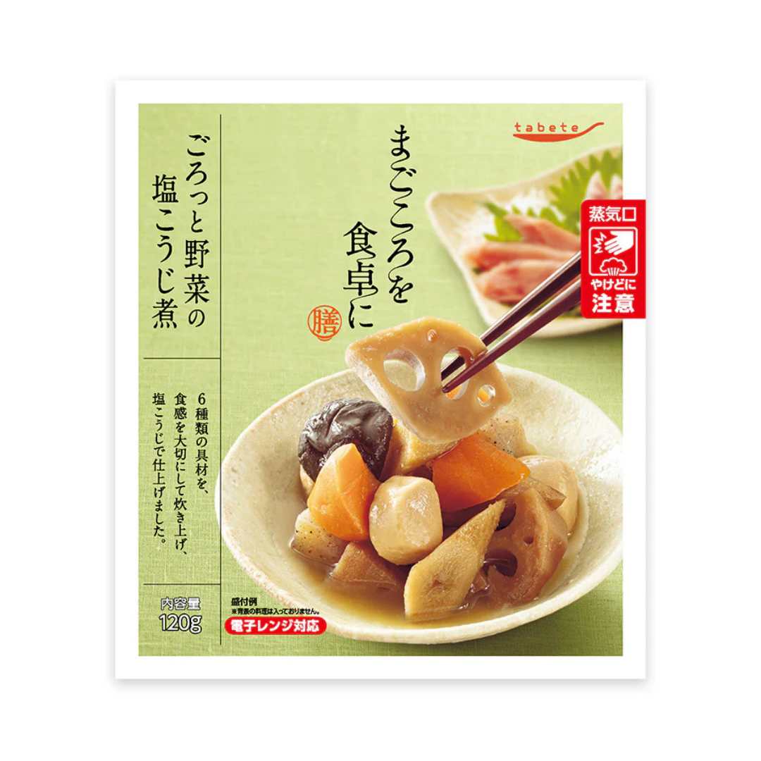 【海外発送可】ごろっと野菜の塩こうじ煮(電子レンジ対応パック) 120g レトルト おかず 和食 惣菜 常温保存 まごころを食卓に 膳 tabete [T81F2712]