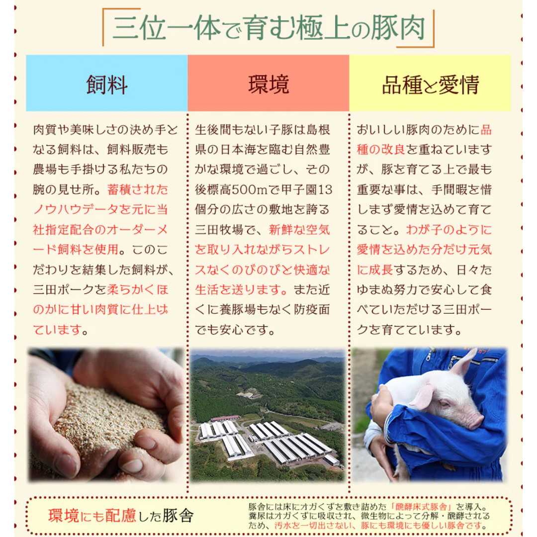 高品質な三田ポークを、しっかり味わえるようお肉は大き目カットに。