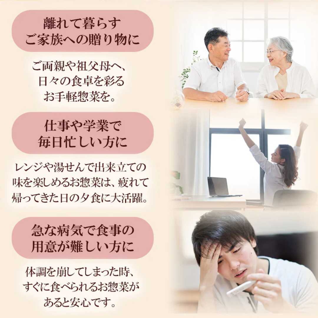 【おすすめポイント】 調理が面倒な煮物系おかずも温めるだけですぐにお召し上がりいただけます。