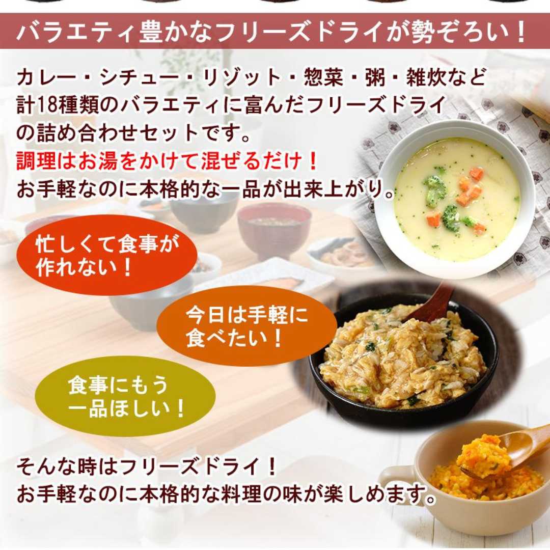 計18種類のバラエティに富んだフリーズドライ
